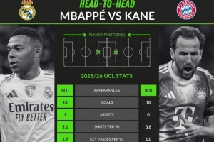 下一篇: 姆巴佩、凯恩欧冠每90分钟数据:射门4.4比3.6,进球1.6比1.4